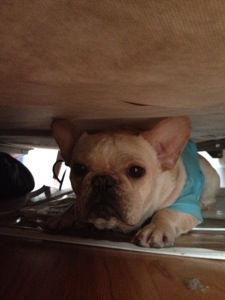 Boo to bath time Posted on April 6, 2013 by adipietra5 My new trick when mom starts to run my bath is hiding under the bed. Needless to say mom is not thrilled with this new trick 🙂